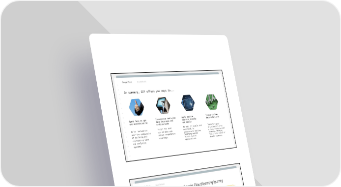 Big Data & Machine Learning Cloud OnBoard 1 2 1 In summary, GCP offers you ways to... 3 2 5 3 6 5 7 6 8 7 9 8 10 Spend less on ops Incorporate real-time Apply machine Create citizen 9 and administration data into apps and learning broadly data scientists 11 architectures and easily 10 12 We make it simple and Transform your 11 We’ve “automated To get the most out” the complexity out of data and practical to organization into 13 12 of building and secure competitive incorporate machine a truly data driven 14 maintaining data advantage. learning models company. Putting 13 within custom tools into hands of and analytics applications. domain experts. 15 14 systems. 16 15 16 17 17 18 Big Data & Machine Learning Cloud OnBoard 1 2 Next Steps on your Google Cloud learning journey 1 3 2 5 3 1 2 3 6 5 7 Today Tomorrow Future 6 Google Cloud Platform Complete hands-on labs: Find more training online 8 7 Fundamentals: Big Data Baseline: Data, ML, AI quest cloud.google.com/training 9 and Machine Learning google.qwiklabs.com 8 10 9 11 10 12 11 13 12 14 13 15 14 16 15 16 17 17 18 82