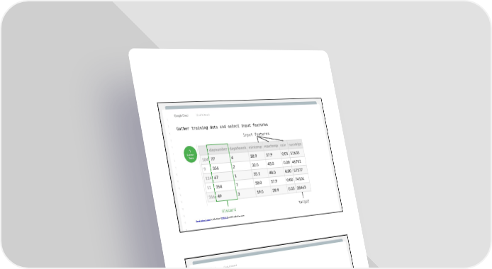 Big Data & Machine Learning Cloud OnBoard 1 2 1 Gather training data and select input features 3 2 Input features 5 3 6 5 1 7 6 Gather 8 Data 7 9 8 10 9 11 10 12 11 13 12 14 13 15 14 16 15 discard target 1716 Neural network imageby Dake, Mysid [CC BY 1.0], via Wikimedia Commons 17 18 Big Data & Machine Learning Cloud OnBoard 1 2 1 All input features need to be numeric 3 2 5 3 Use as-is One-hot encoding 6 5 1 7 6 Gather 8 Data 7 9 8 10 9 11 10 12 11 13 12 14 13 15 14 16 15 1716 Neural network imageby Dake, Mysid [CC BY 1.0], via Wikimedia Commons 17 18 53
