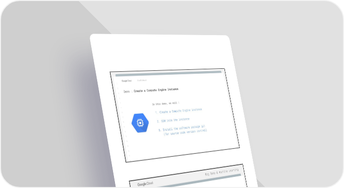 Big Data & Machine Learning Cloud OnBoard 1 2 1 Demo : Create a Compute Engine Instance 3 2 5 3 6 5 In this demo, we will : 7 6 8 7 1. Create a Compute Engine instance 9 8 10 9 2. SSH into the instance 11 10 12 11 3. Install the software package git 13 12 (for source code version control) 14 13 15 14 16 15 1716 17 18 Big Data & Machine Learning 1 2 Agenda 3 5 CPUs on demand + Demo 6 7 A global filesystem + Demo 8 9 10 11 12 13 14 15 16 17 14