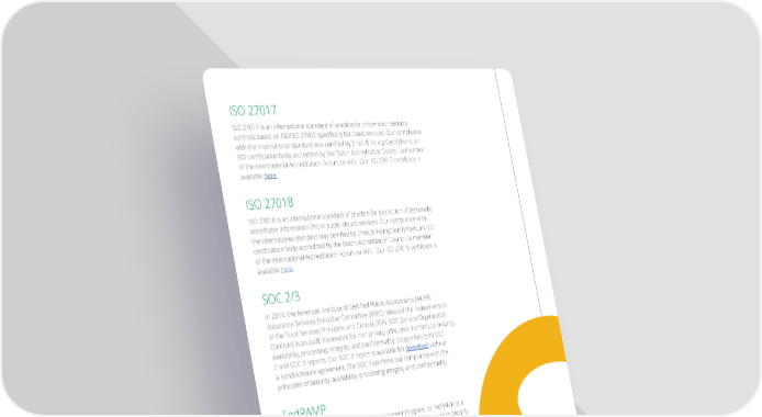 ISO 27017 ISO 27017 is an international standard of practice for information security controls—based—on—ISO/IEC—27002—speciically—for—cloud—services.—Our—compliance— with—the—international—standard—was—certiied—by—Ernst—&—Young—CertifyPoint,—an— ISO—certiication—body—accredited—by—the—Dutch—Accreditation—Council—”a—member— of—the—International—Accreditation—Forum,—or—IAF).——Our—ISO—27017—certiicate—is— available here. ISO 27018 ISO 27018 is an international standard of practice for protection of personally identiiable—information—”PII)—in—public—clouds—services.—Our—compliance—with— the—international—standard—was—certiied—by—Ernst—&—Young—CertifyPoint,—an—ISO— certiication—body—accredited—by—the—Dutch—Accreditation—Council—”a—member— of—the—International—Accreditation—Forum,—or—IAF).——Our—ISO—27018—certiicate—is— available here. SOC 2/3 In—2014,—the—American—Institute—of—Certiied—Public—Accountants—”AICPA)— Assurance Services Executive Committee (ASEC) released the revised version of the Trust Services Principles and Criteria (TSP). SOC (Service Organization Controls) is an audit framework for non-privacy principles that include security, availability,—processing—integrity,—and—conidentiality.—Google—has—both—SOC— 2 and SOC 3 reports. Our SOC 3 report is available for download without a—nondisclosure—agreement.—The—SOC—3—conirms—our—compliance—with—the— principles—of—security,—availability,—processing—integrity—and—conidentiality. FedRAMP The Federal Risk and Authorization Management Program, or FedRAMP, is a government-wide program that provides a standardized approach to security assessment, authorization, and continuous monitoring for cloud products and services. This approach uses a “do once, use many times” framework that is intended to expedite U.S. government agency security assessments and help agencies move to secure cloud solutions. Google maintains a FedRAMP Authorization to Operate (ATO) for Google Apps [G Suite] and App Engine. 11