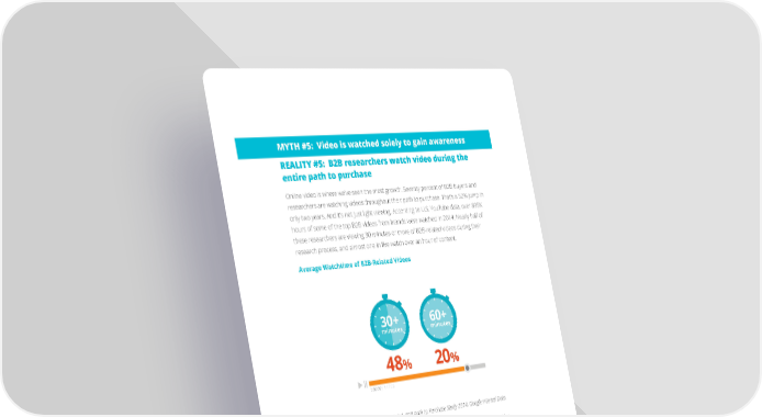 MYTH #5: Video is watched solely to gain awareness REALITY #5: B2B researchers watch video during the entire path to purchase Online video is where we’ve seen the most growth. Seventy percent of B2B buyers and researchers are watching videos throughout their path to purchase. That’s a 52% jump in only two years. And it’s not just light viewing. According to U.S. YouTube data, over 895K hours of some of the top B2B videos from brands were watched in 2014. Nearly half of these researchers are viewing 30 minutes or more of B2B-related videos during their research process, and almost one in five watch over an hour of content. Average Watchtime of B2B-Related Videos 30+ 60+ minutes minutes 48 20 % % 1:00:00 / 1:17:13 Source: Google/Millward Brown Digital, B2B Path to Purchase Study 2014, Google Internal Data. What's got their attention? Videos about product features top the list, followed by how-tos and professional reviews. They’re watching the videos that appear on YouTube because they find them highly useful. These videos are also helping extend the conversation: When asked what they did after watching, B2B researchers said they talked to colleagues, looked for more information, visited a brand's website/store or shared the video. Start to finish, videos are playing an increasing role for these researchers. That means you need to be producing content that helps them learn about, compare and research their B2B purchases. thinkwithgoogle.com 7